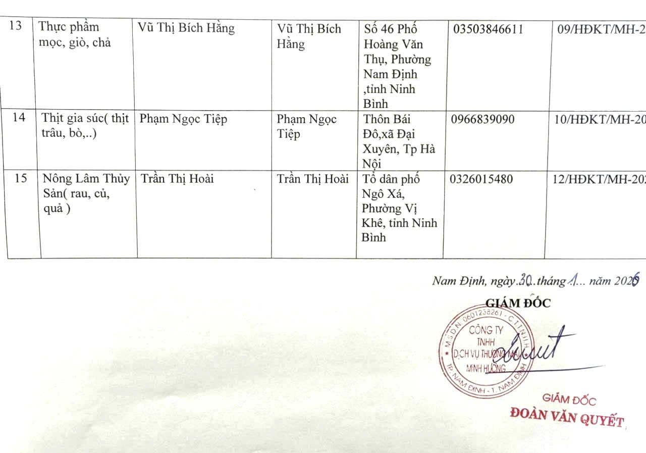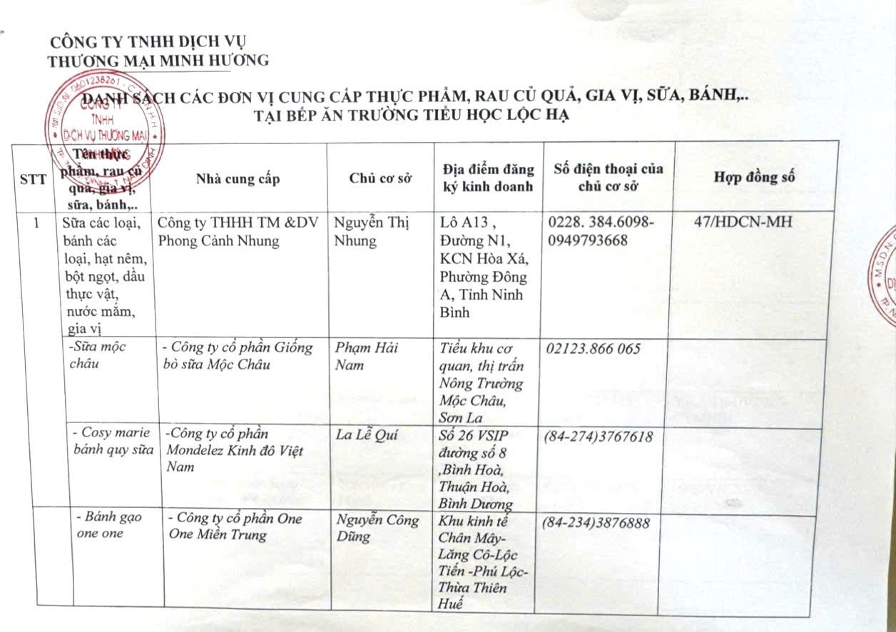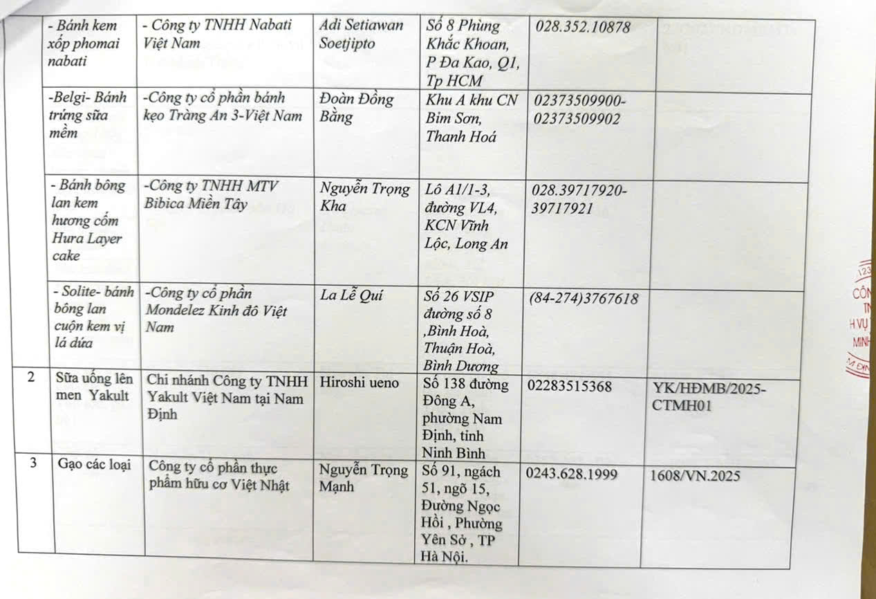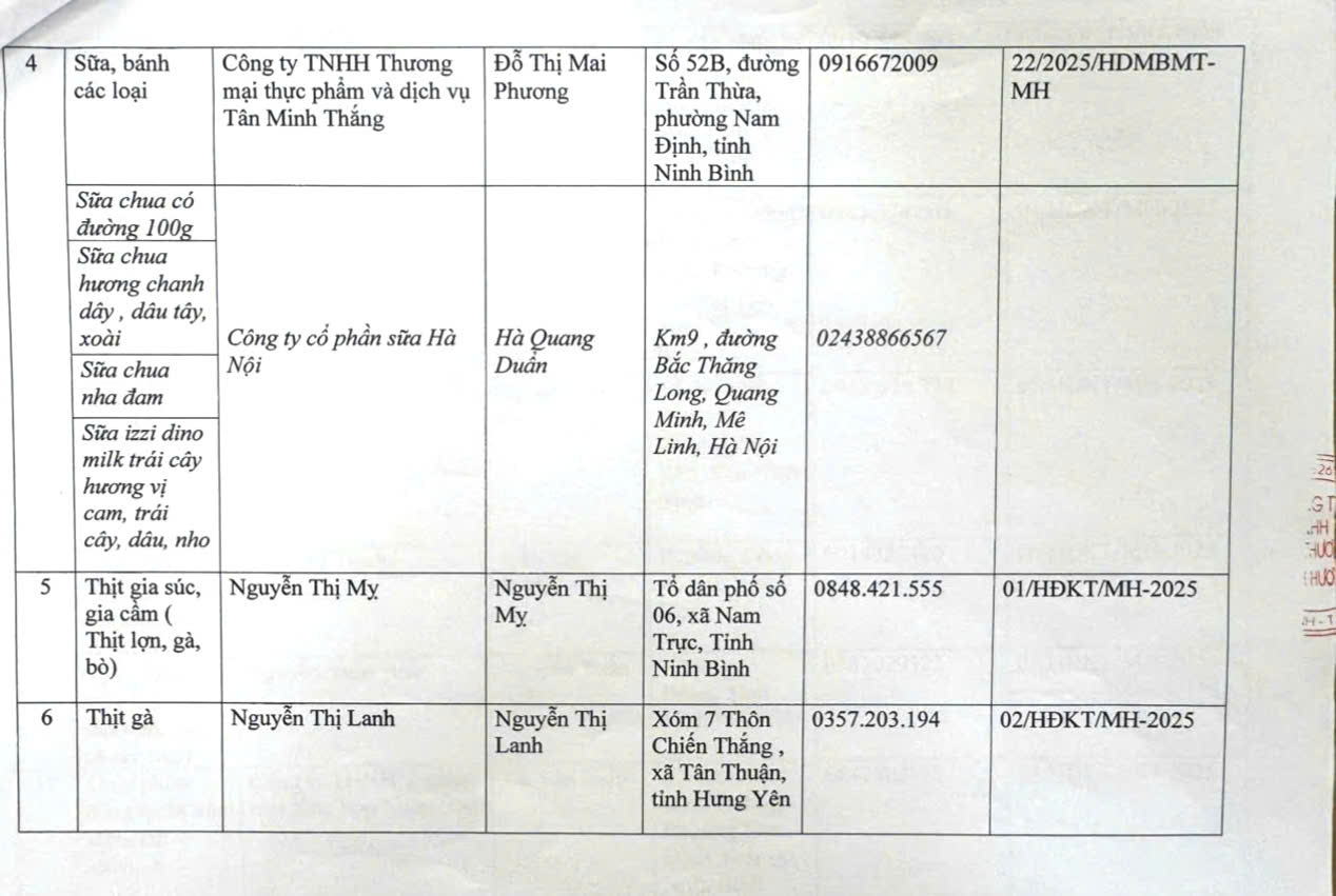 Danh sách các đơn vị cung cấp thực phẩm, rau củ quả, gia vị, sữa, bánh,…