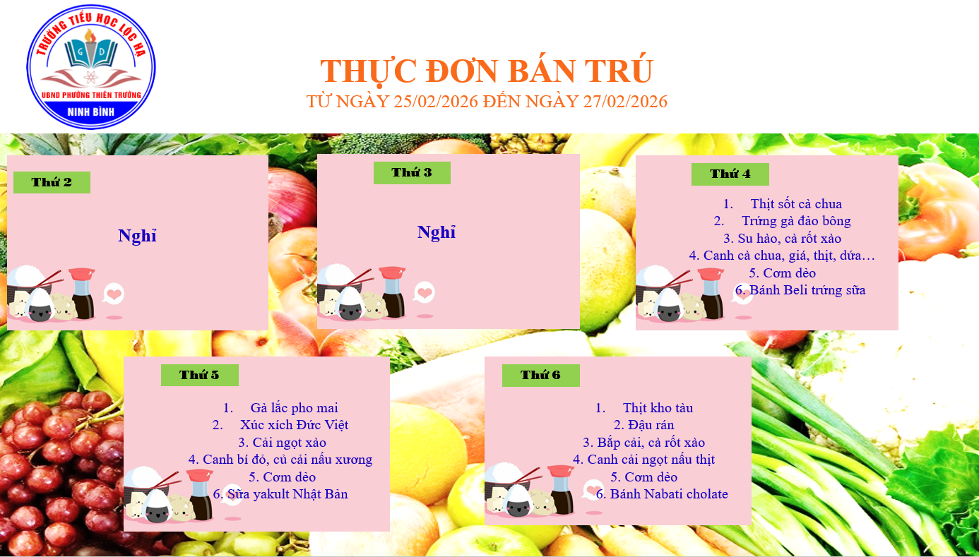 Thực đơn bán trú từ ngày 25/02/2026 đến ngày 27/02/2026